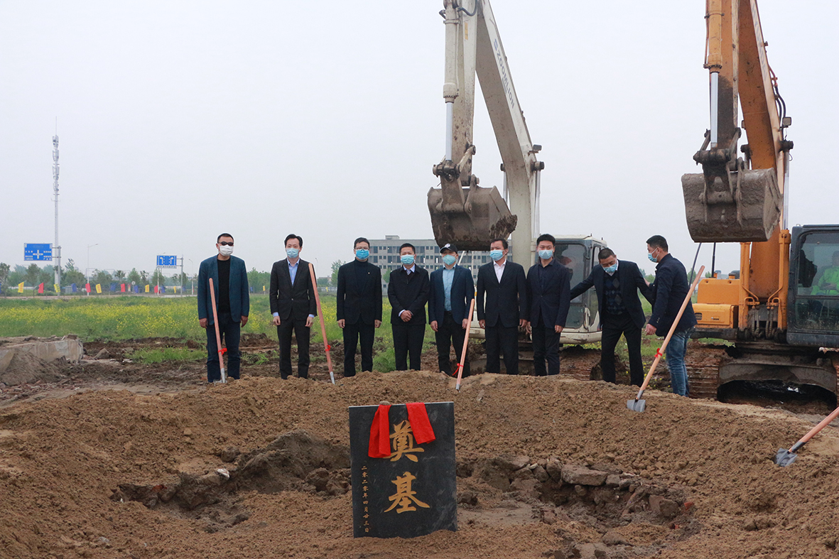 在愛德森堡集團總經理黎海峰邀請下,潘郭華、潘淳、陶愛華等領導伴隨著禮炮聲,共同為愛德森堡黃梅新材料項目奠基培土并合影留念。