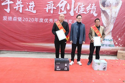 員工是企業(yè)的根基,優(yōu)秀的員工是企業(yè)制勝的法寶。愛德森堡的發(fā)展壯大離不開他們不懈的努力和無私的奉獻。為激勵先進,鞭策后進者,集團公司為優(yōu)秀員工們頒發(fā)了智能電飯煲、掃地機、破壁機等22份獎品及精美的榮譽證書。