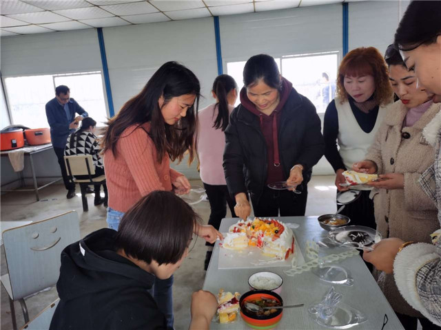 3月8日上午控股公司買了一個大蛋糕給全體女員工一起分享,每個人臉上都洋溢著幸福的微笑。